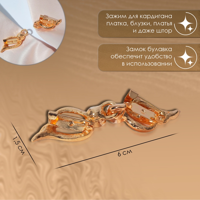 Зажим для кардигана - изысканный аксессуар, в том числе на поверхности платья, шали или свитера, данный элемент можно использовать даже для штор. Зажимы актуальны как в повседневном так и праздничном образе, добавляют очарования вашей одежде при сочетании различных нарядов.