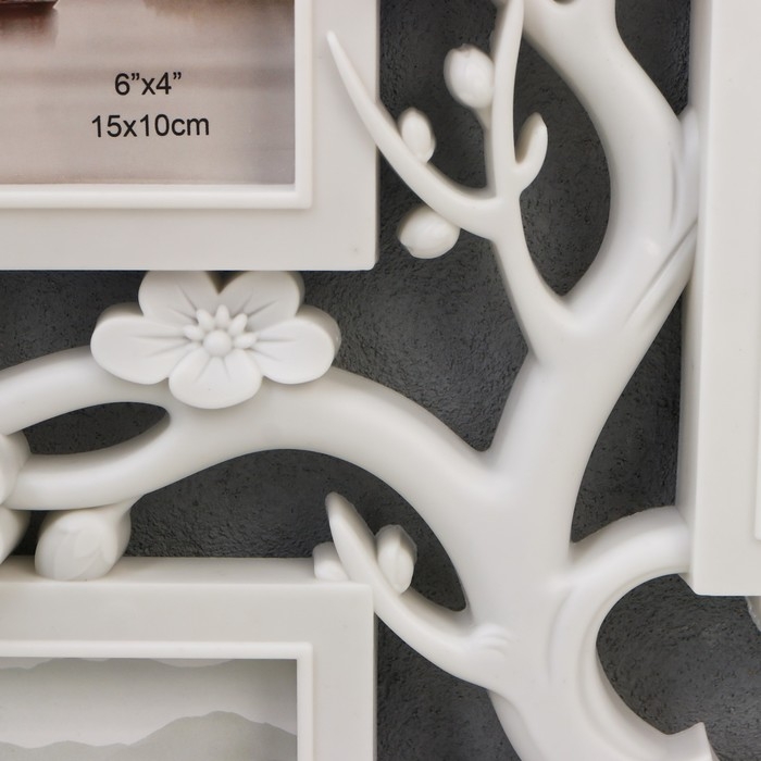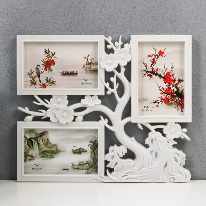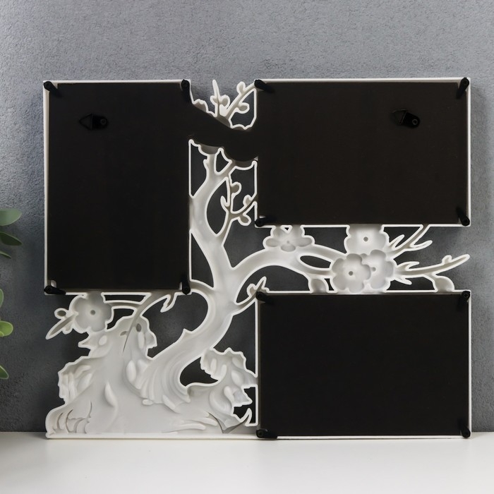 Фоторамка пластик на 3 фото 10х15 см "Вишнёвый сад" белый 32х27 см