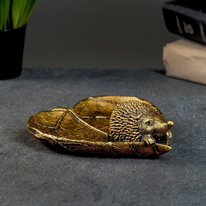 Конфетница "Ежик на листочке" золото, 9x10x10см