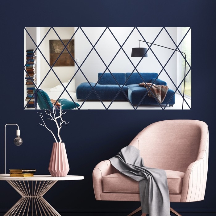 Наклейки интерьерные "Ромбы", зеркальные, декор настенный, панно 50 х 100 см, 32 эл