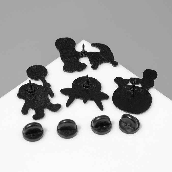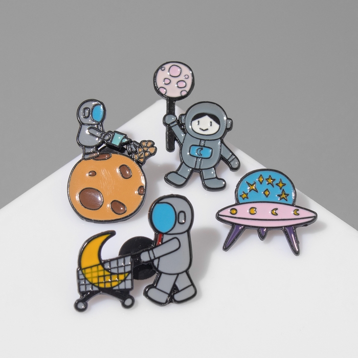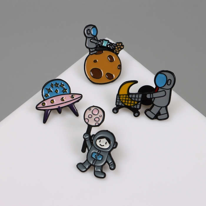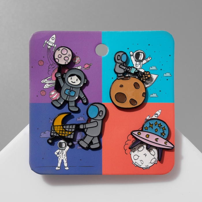 Набор значков (4шт) «Космос», цветные в чёрном металле