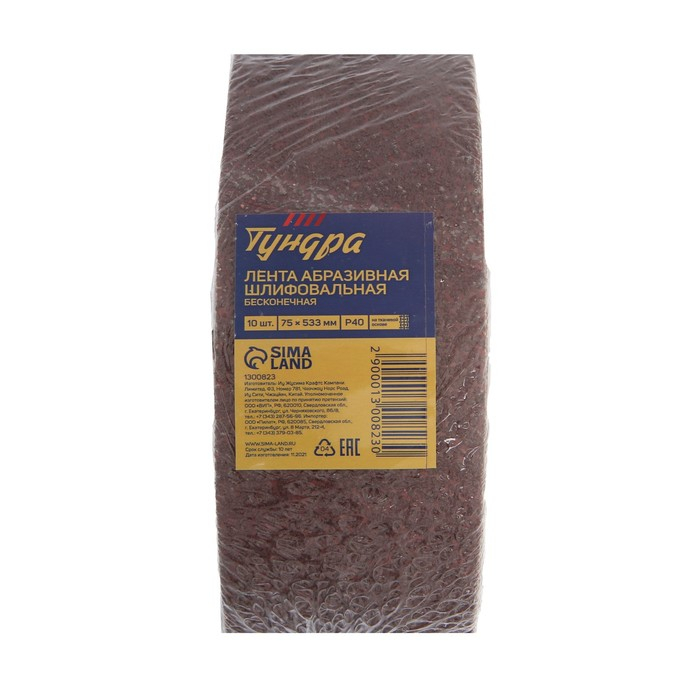 Лента абразивная бесконечная ТУНДРА, на тканевой основе, 75 х 533 мм, Р40, 10 шт.