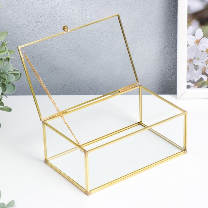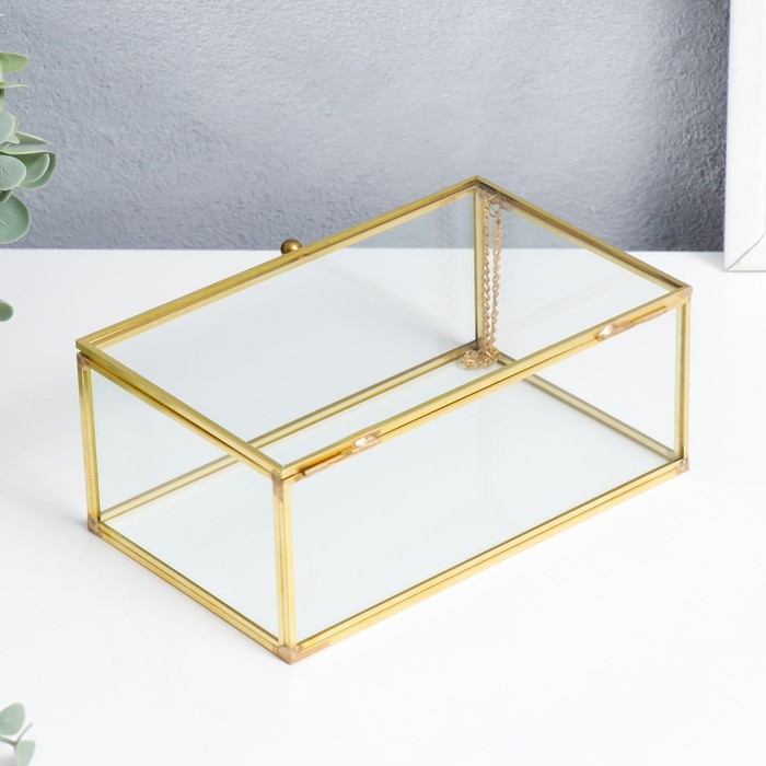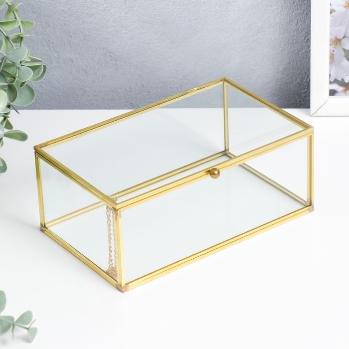 Шкатулка стекло с металлическим каркасом "Прямоугольник с гранями" золото 7х10,5х17 см