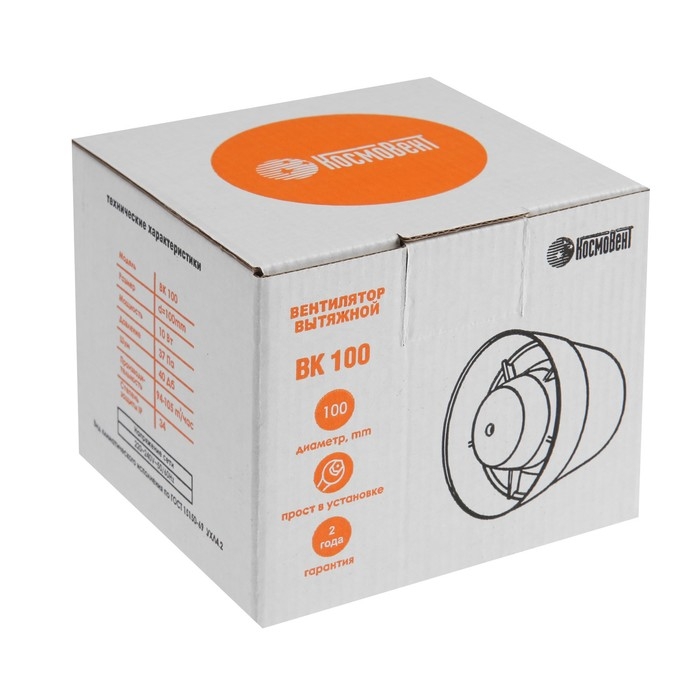 Вентилятор вытяжной "КосмоВент" ВК100, d=100 мм, 10 Вт, 40 дБ, 105 м³/ч, канальный