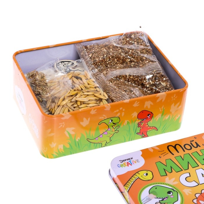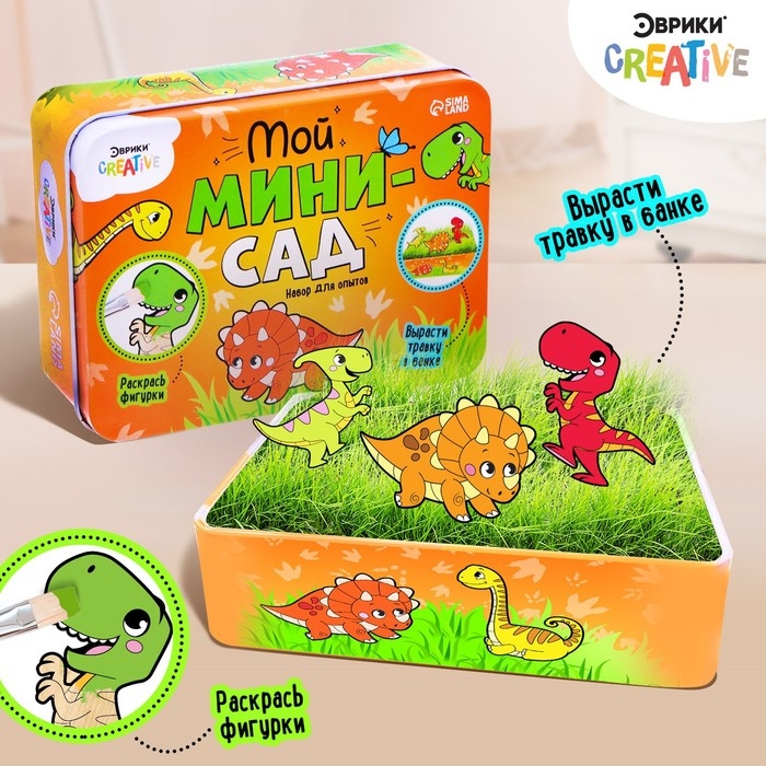 Набор для опытов «Мой мини-сад: Динозаврики» станет прекрасным способом занять детей и показать им процесс прорастания семян. Ребёнок самостоятельно вырастит декоративную травку в домашних условиях и научится ухаживать за растением.