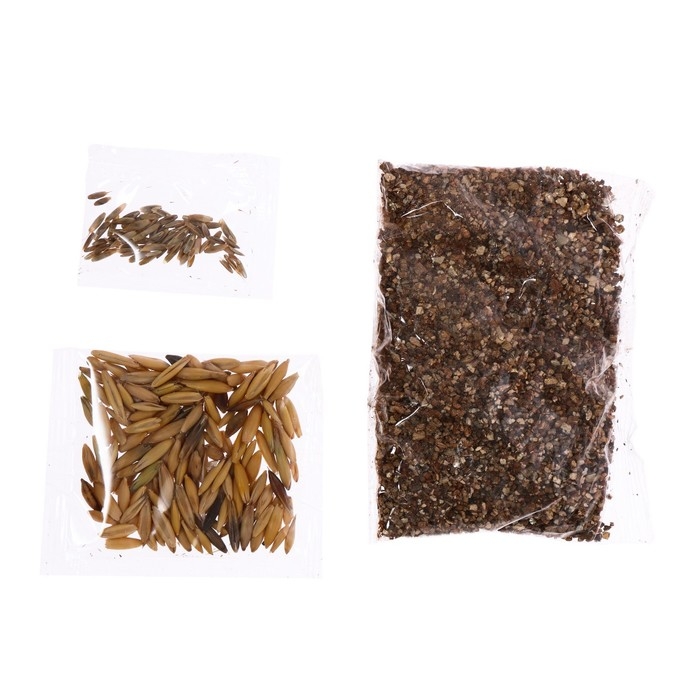 - В комплекте семена декоративной травы — всё готово к выращиванию.