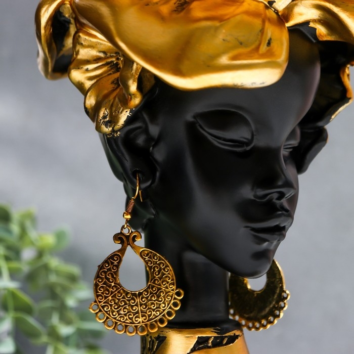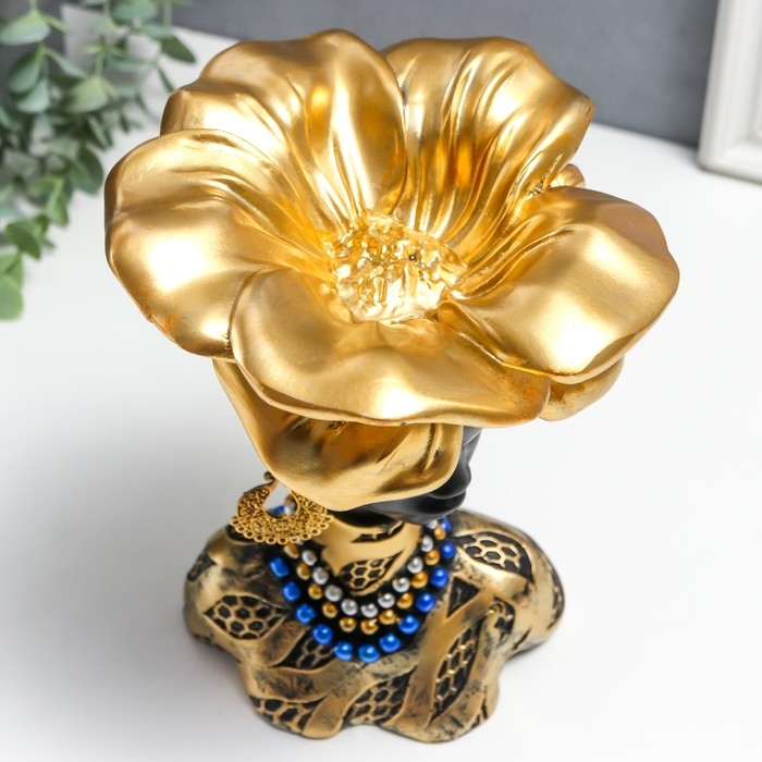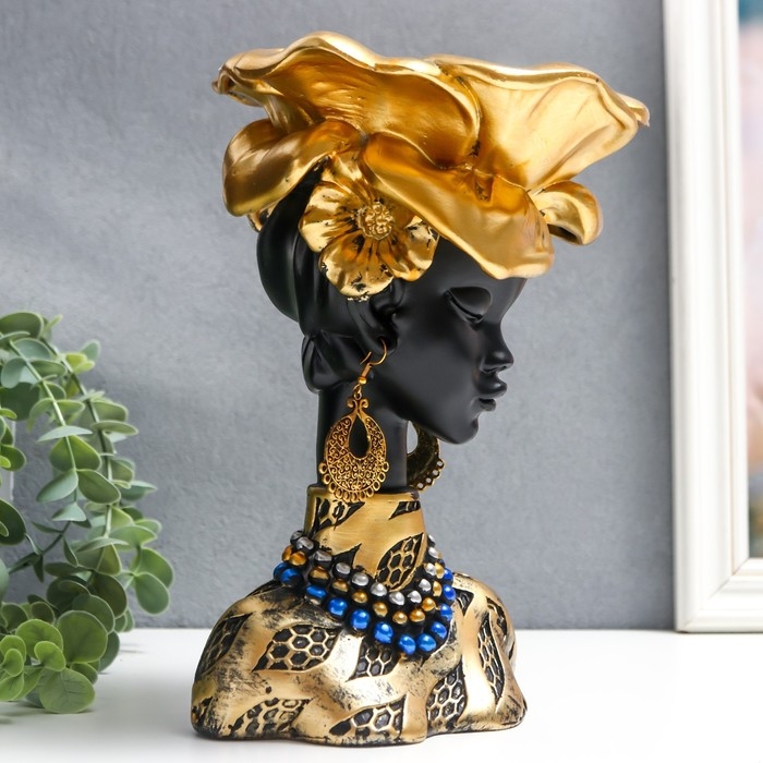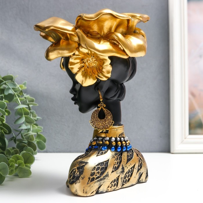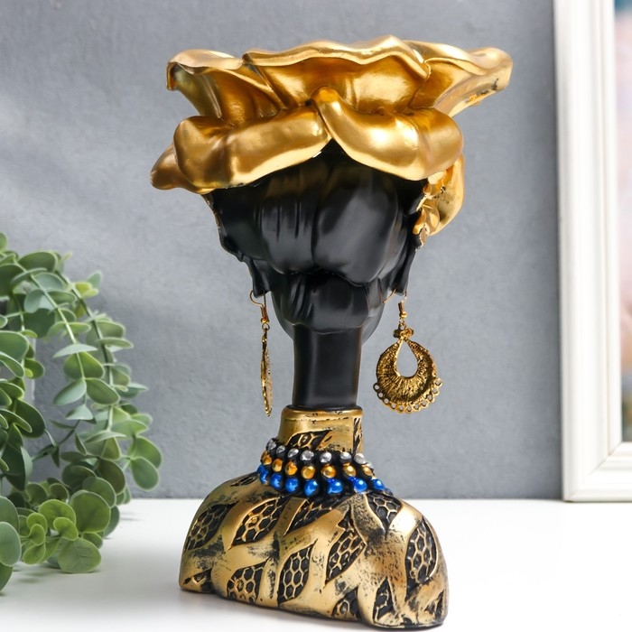 Сувенир полистоун бюст подставка "Девушка из Африки" чёрный с золотом 23х15х15 см