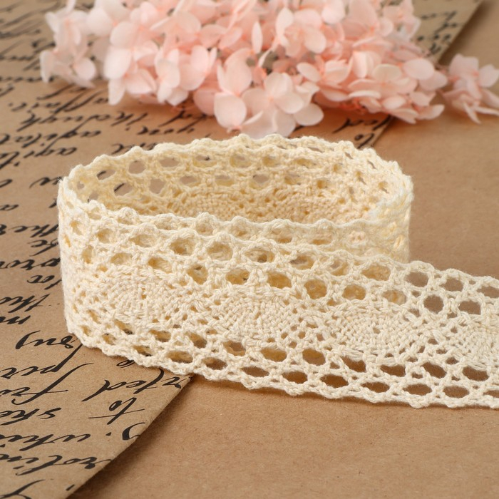 Кружево вязаное, 38 мм × 15 ± 1 м, цвет бежевый