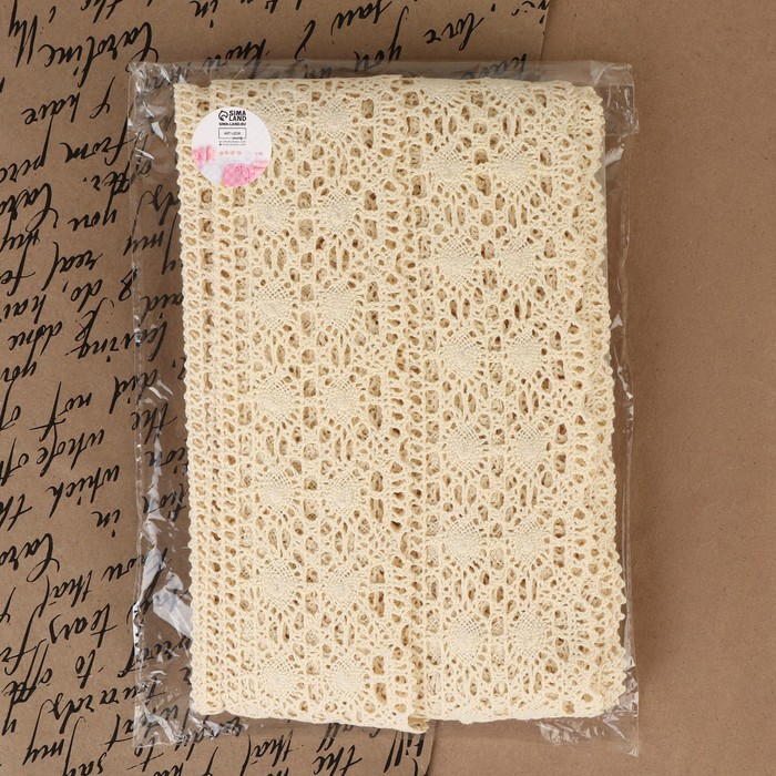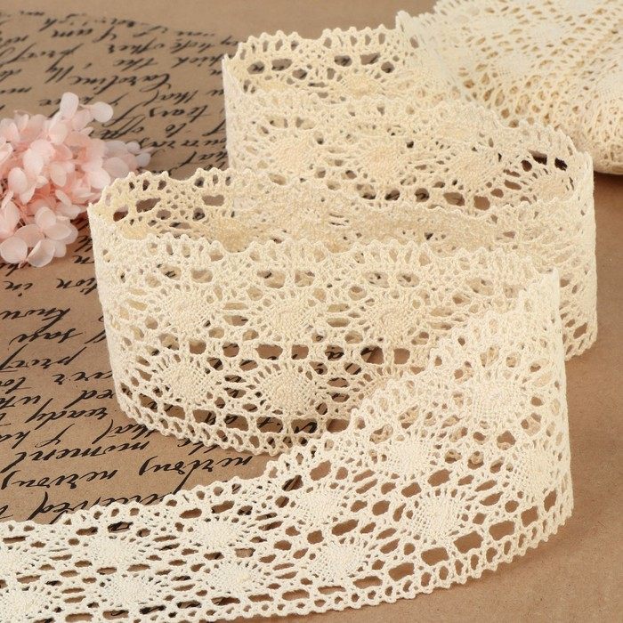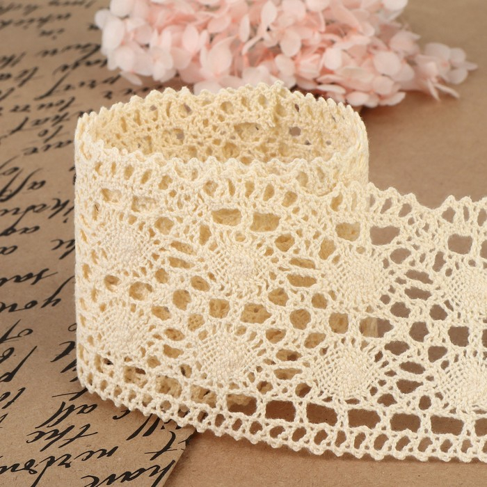 Кружево вязаное, 70 мм × 15 ± 1 м, цвет бежевый