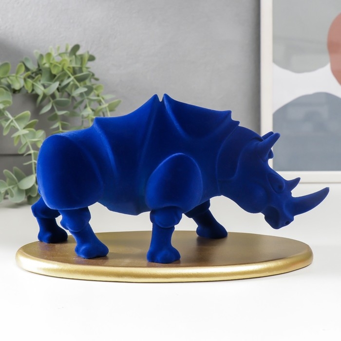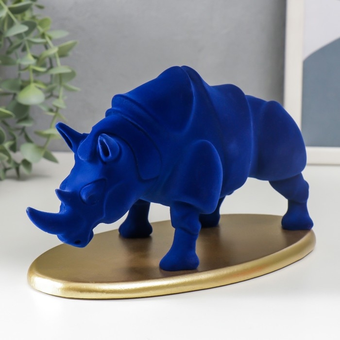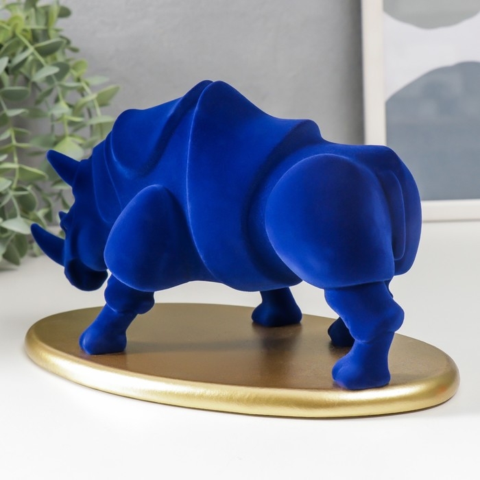 Сувенир полистоун "Синий носорог на подставке" флок 12,8х22,5х13,5 см