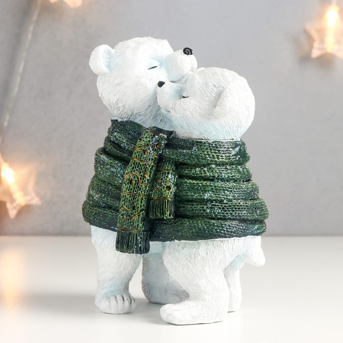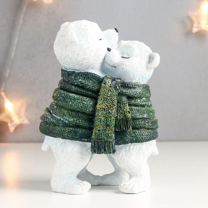 Сувенир полистоун "Белые мишки обмотанные вязанным шарфом" 16х8х11,5 см