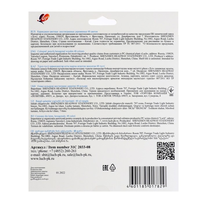 - При производстве карандашей соблюдены все требуемые типоразмеры. Нет уменьшения диаметра корпуса или диаметра стержня с целью удешевления.