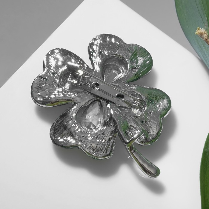 Брошь «Клевер» на удачу, цвет изумрудный в серебре