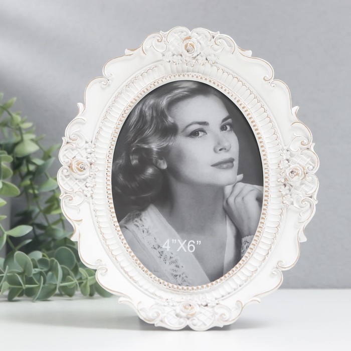 Фоторамка полистоун 10х14 см "Цветочные узоры" белая 15,5х19,5 см