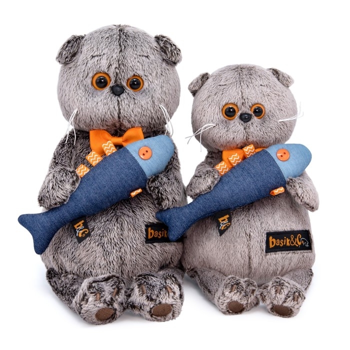 Мягкая игрушка «Басик с джинсовой рыбкой», 22 см