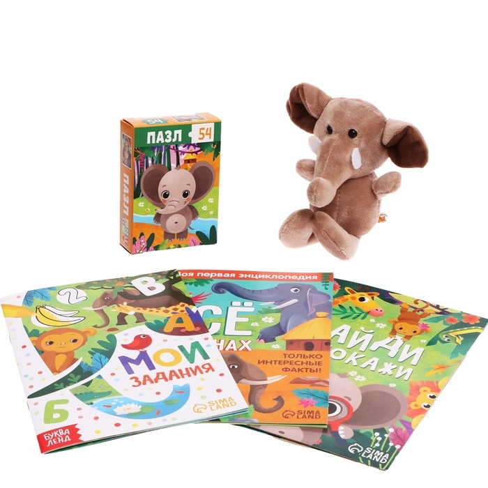 Набор 3 в1 «Слонёнок Топа»: 3 книги, пазл, мягкая игрушка