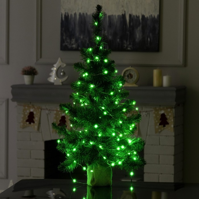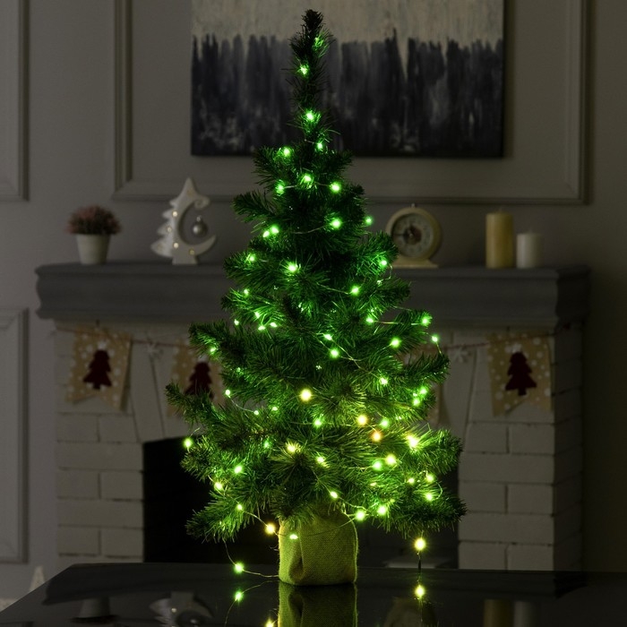 Гирлянда «Нить» 3 м с насадками «Ёлки», IP20, прозрачная нить, 20 LED, свечение мульти (RG/RB), мигание, USB