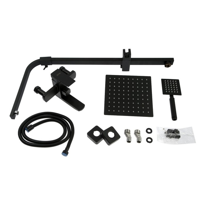 Душевая система ZEIN Z1006, смеситель, тропическая и ручная лейка, стойка, черный
