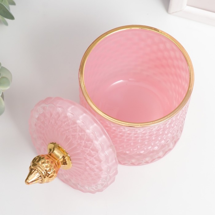 Шкатулка стекло "Ромбы и купол" розовый с золотом 14х8,2х8,2 см