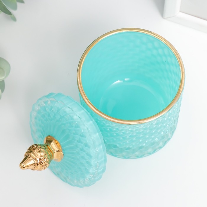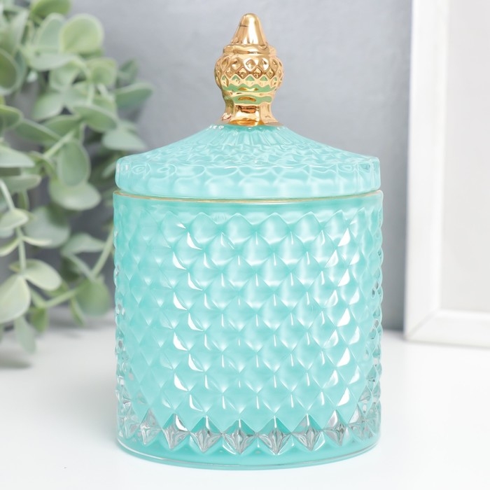 Шкатулка стекло "Ромбы и купол" голубой с золотом 14х8,2х8,2 см