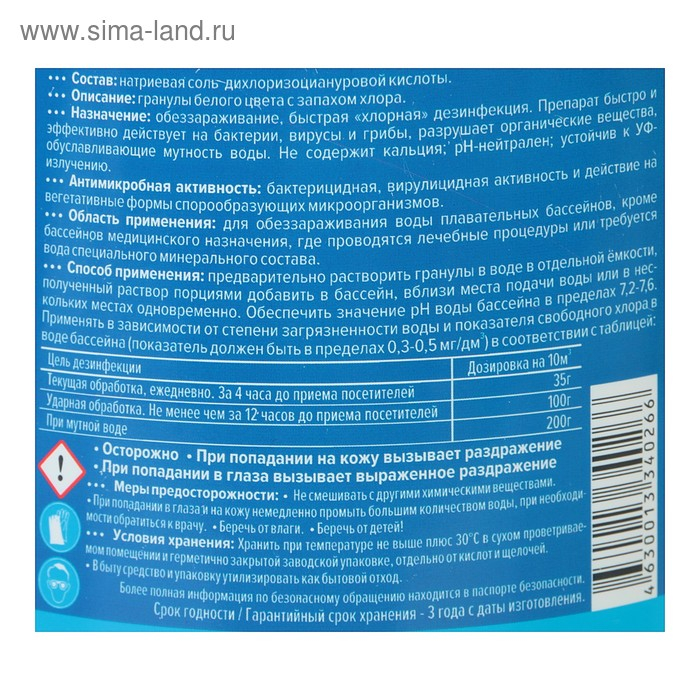 Быстрый стабилизированный хлор Aqualeon гранулы, 1 кг