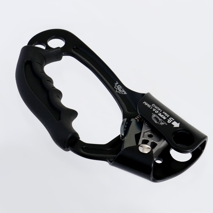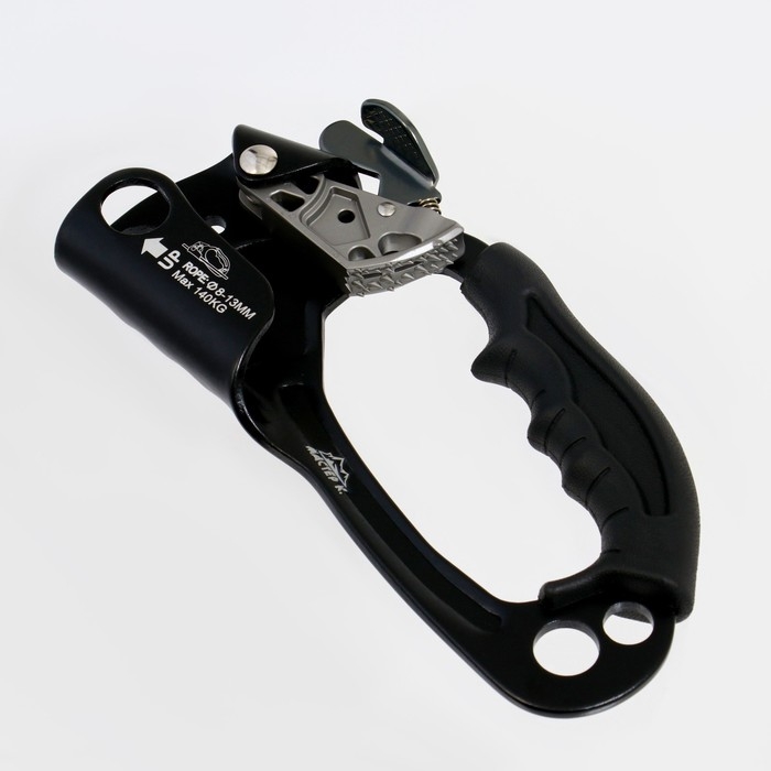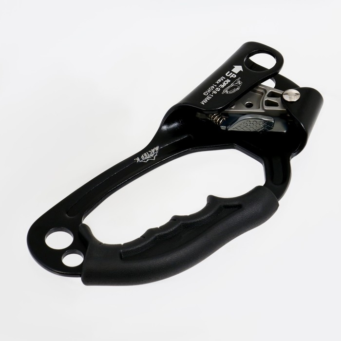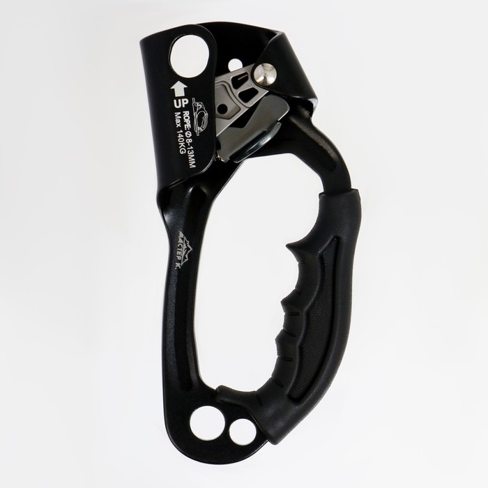 Жумар (или зажим) необходим для подъема по вертикальным или наклонным перилам. Он достаточно прост в использовании – представляет собой зажим, двигающийся вверх. А вот движение вниз на нем блокирует специальный кулачок с шипами, который при тяге упирается в веревку.