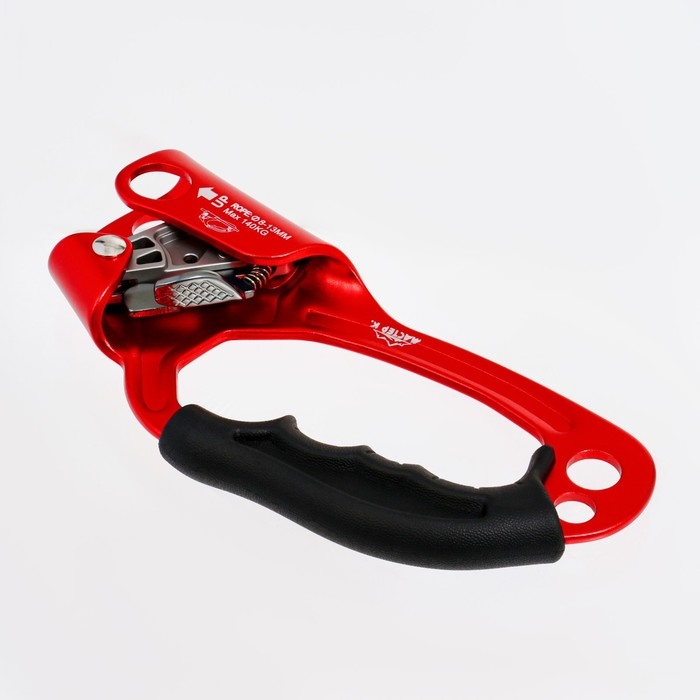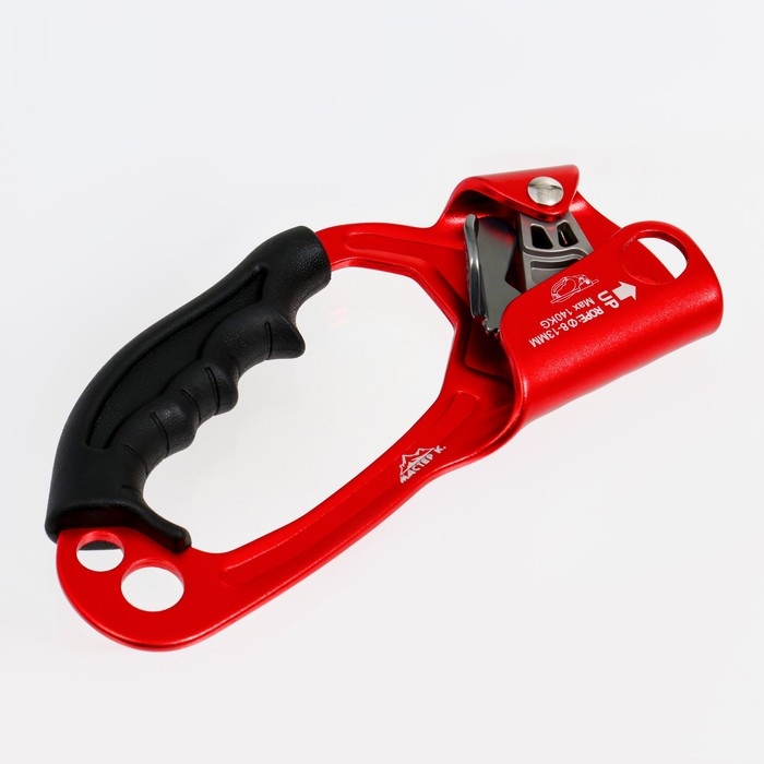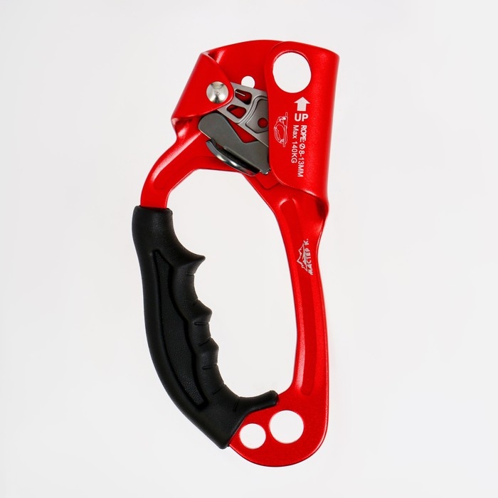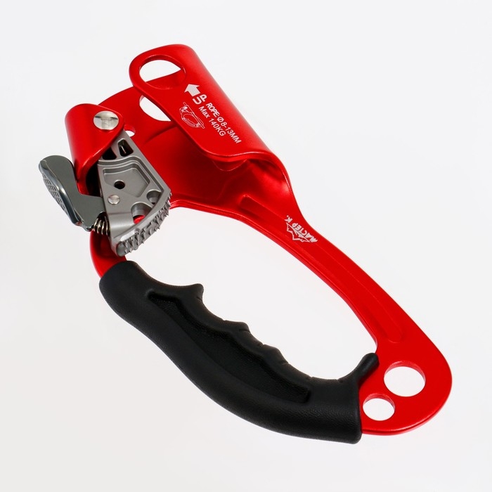 Жумар (или зажим) необходим для подъема по вертикальным или наклонным перилам. Он достаточно прост в использовании – представляет собой зажим, двигающийся вверх. А вот движение вниз на нем блокирует специальный кулачок с шипами, который при тяге упирается в веревку.