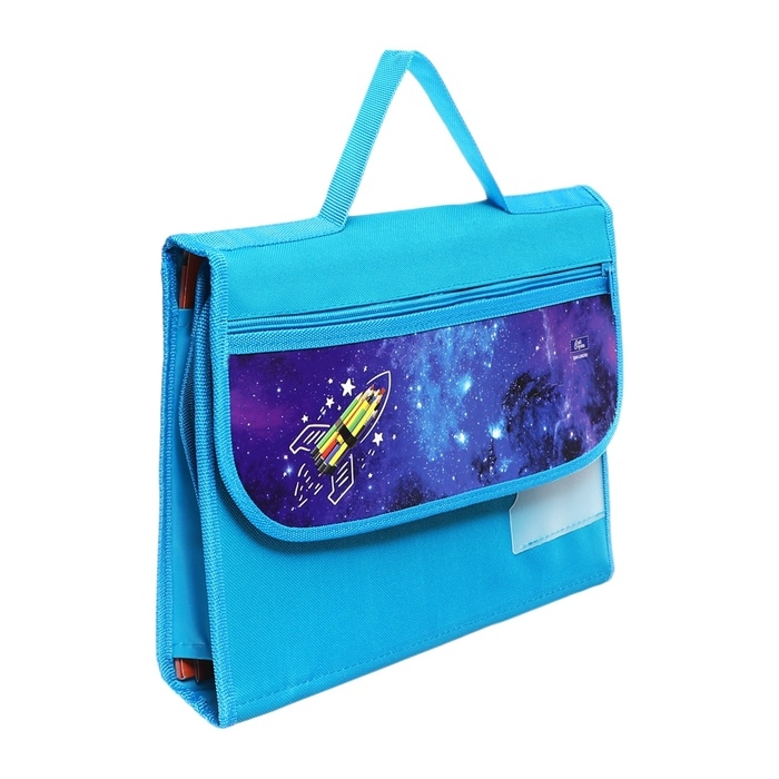 Папка для труда А4, 330 х 230, с ручками текстиль, раскладная на липучке, с наполнением 10 предметов, Calligrata, ПТР-10, "Ракета"