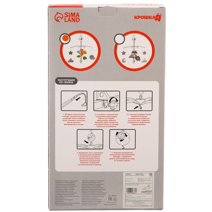 Мобиль на кроватку, проигрывающий колыбельные мелодии, отличная игрушка и подарок для малыша от 0 мес. Его можно прикрепить с помощью кронштейна, который идет в комплекте, на кроватку или коляску. Основа с игрушками вращается на 360 градусов. Все погремушки съемные, ими можно играть по отдельности, а также их очень удобно мыть.