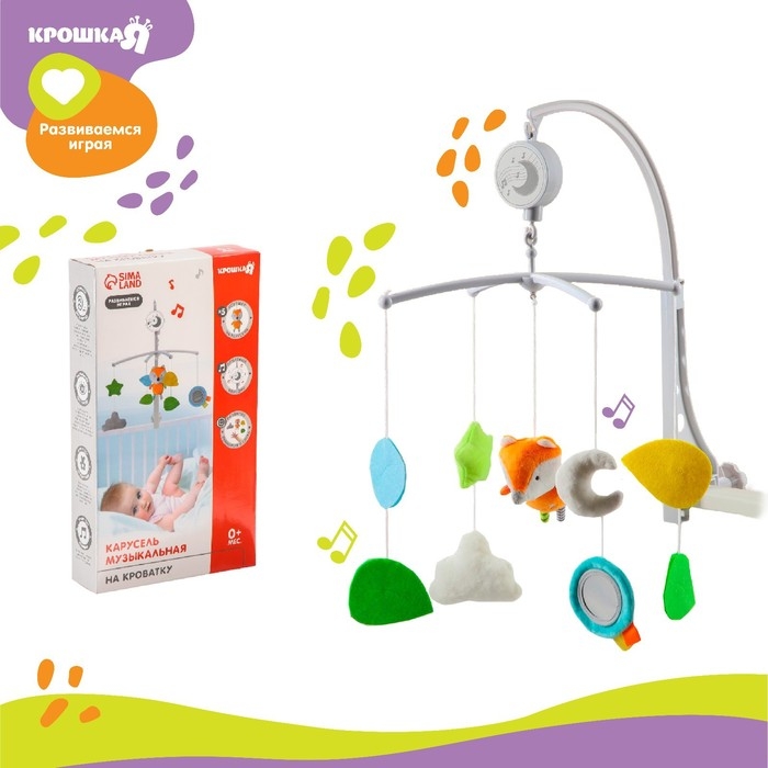 Мобиль музыкальный на кроватку «Лисенок», заводной, мягкие игрушки, Крошка Я
