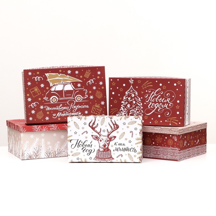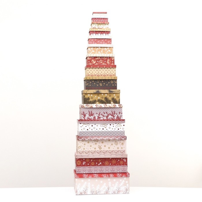 Набор подарочных новогодних коробок 15 в 1 "Изысканность", 47,5 х 35,5 х 17,5 - 12 х 7 х 4 см. Новый год