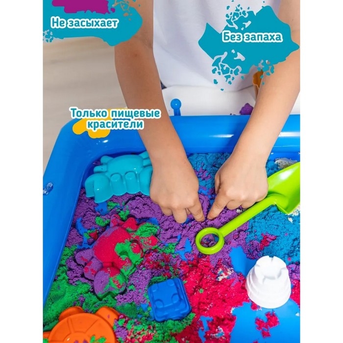 Умный песок приятен на ощупь и напоминает по консистенции морской песок. Он хорошо держит форму, не застывает на воздухе и не липнет к рукам. Поможет весело провести время детям разного возраста.