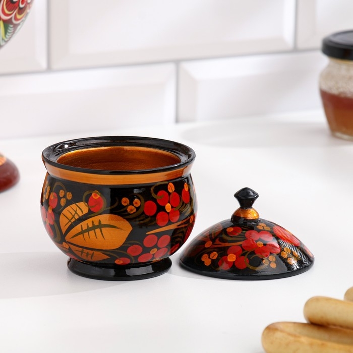 Солонка «Ягодка», малая, с крышкой, 7×6 см, хохлома