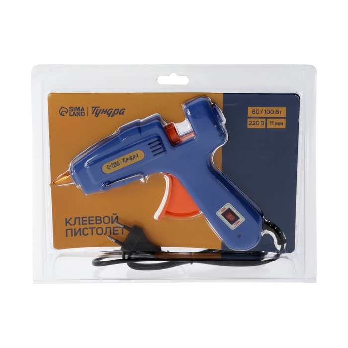 Клеевой пистолет ТУНДРА, переключатель мощности 60/100 Вт, 220 В, антикапля, 11 мм