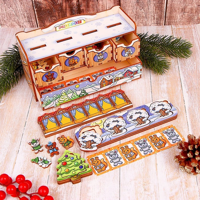 Игра «Волшебный комодик. Новый год» способствует развитию у детей: зрительно-моторной координации, концентрации внимания, памяти, логического мышления, мелкой моторики.