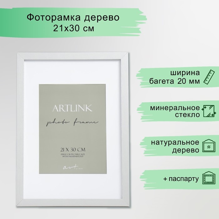Фоторамка МДФ "Ellis" 21x30 см, с паспарту, серебро