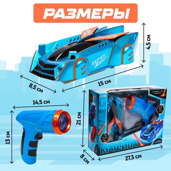Антигравитационная машинка LASER, управление лазером, работает от аккумулятора, ездит по стенам, цвет синий