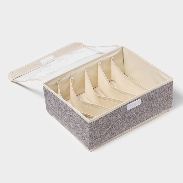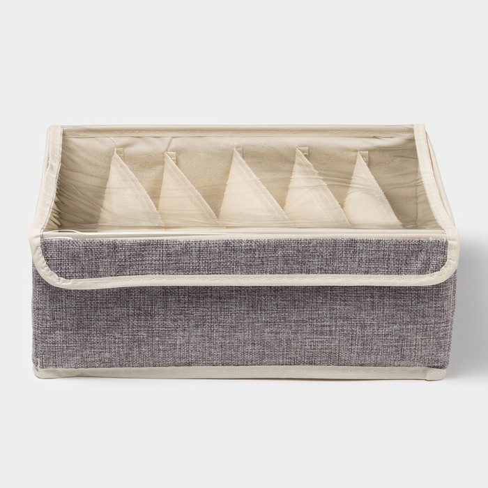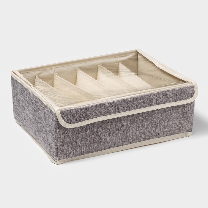 Органайзер для хранения белья Доляна «Тео», 6 ячеек, с прозрачной крышкой, 32×23×12 см, цвет серый