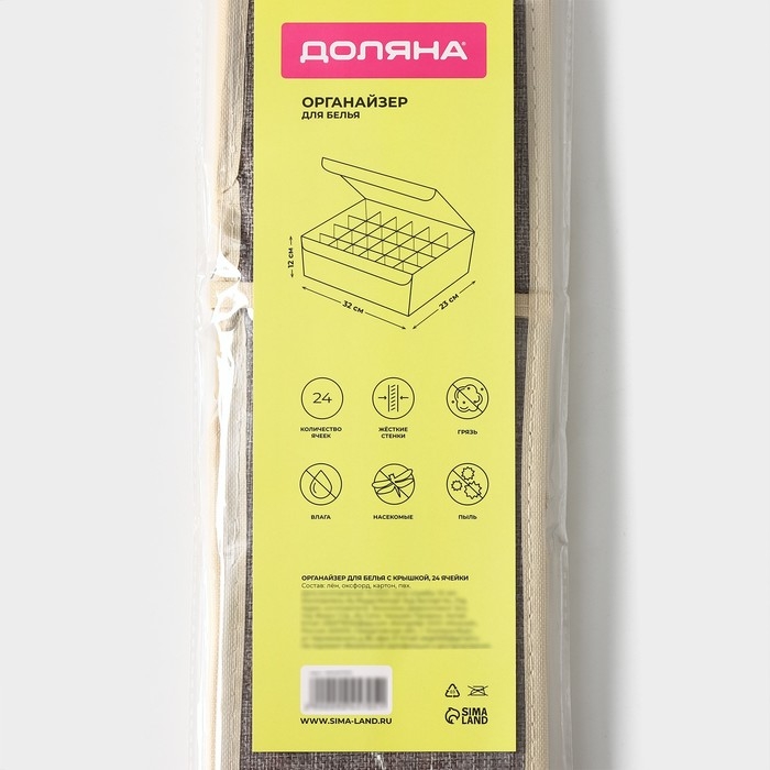 Органайзер для хранения белья LaDо́m «Франческа», 9 ячеек, с крышкой, 35×30×12 см, цвет бежевый