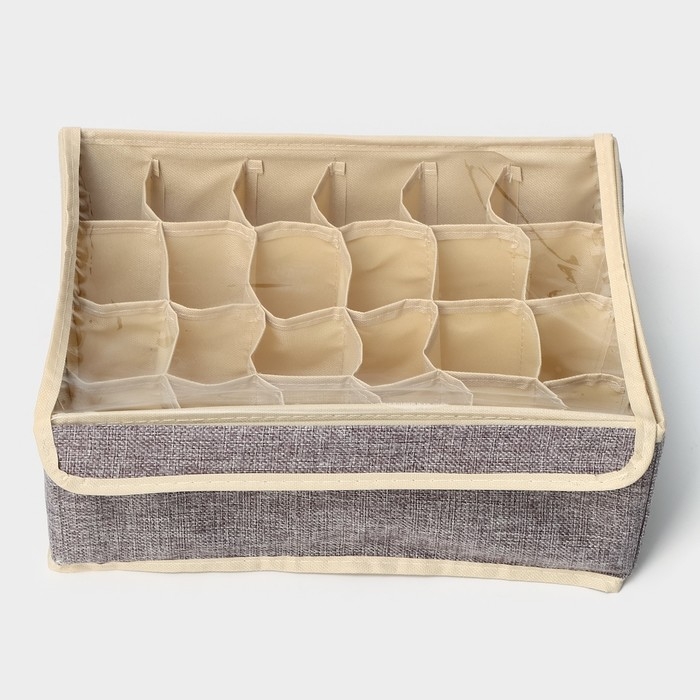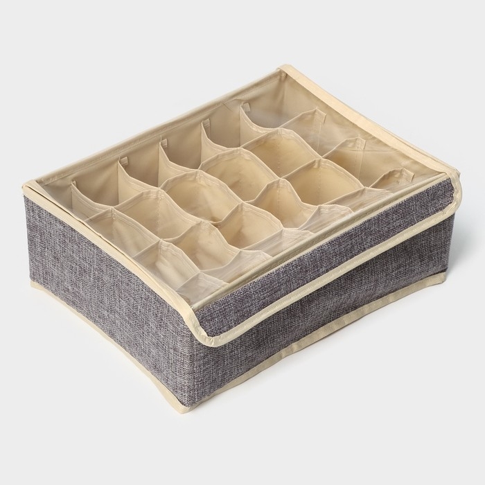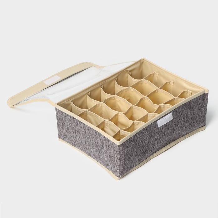 Органайзер для хранения белья с прозрачной крышкой Доляна «Тео», 24 ячеек, 32×23×12 см, цвет серый