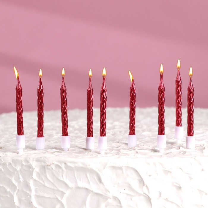 Набор свечи в торт "Спираль", 200шт, 5 см, красный металлик