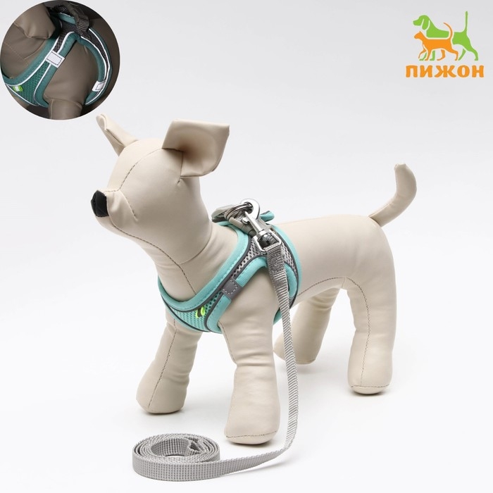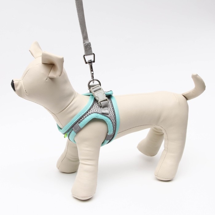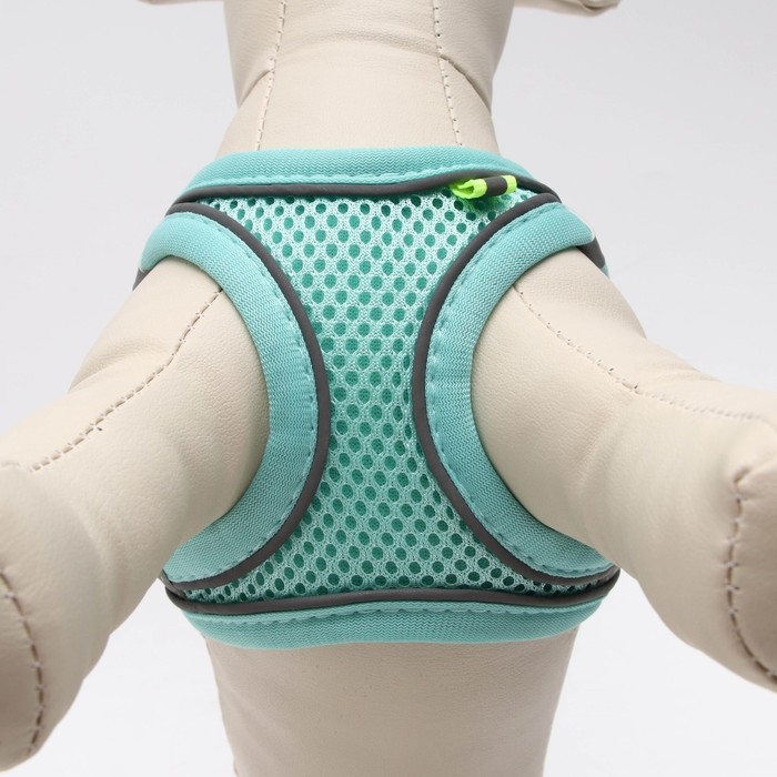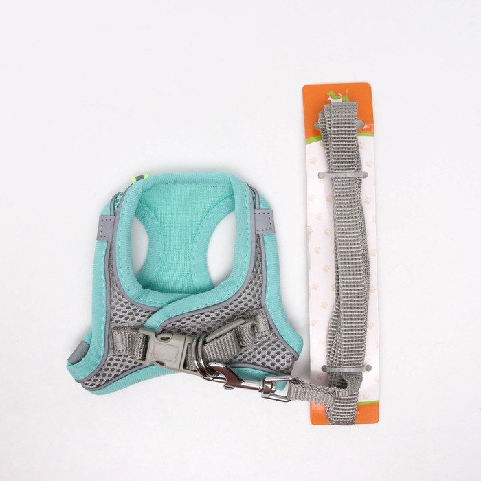 Комплект с мягкой шлейкой, размер XXS, поводок 150 х 1,5 см, ОГ 28-30 см, ОШ 24-26 см, бирюз