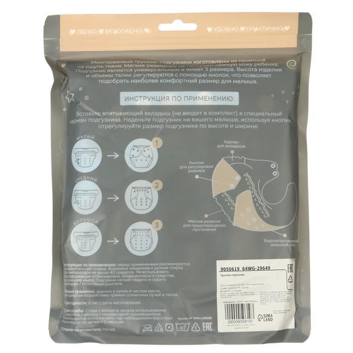 Трусики-подгузник, многоразовый, с вкладышем «Бабочки», Крошка Я