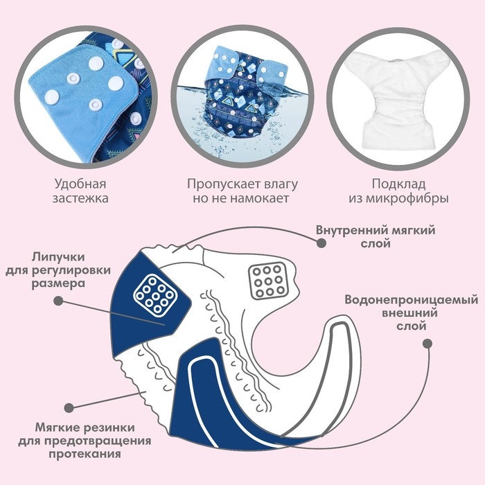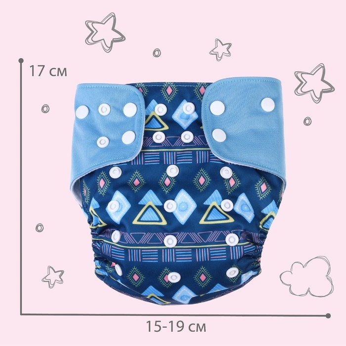Многоразовый подгузник «Фигуры», 3-15 кг, цвет синий, Крошка Я