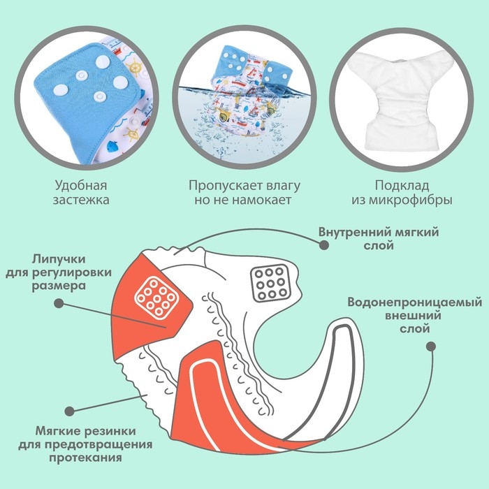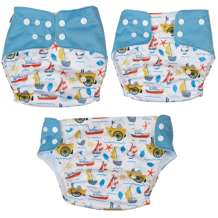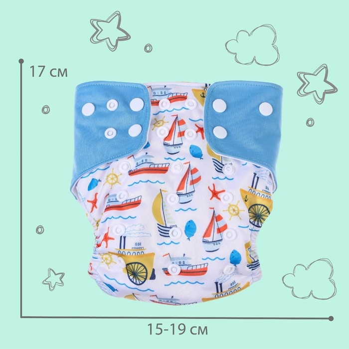 Многоразовый подгузник «Корабли», 3-15 кг, цвет белый, Крошка Я