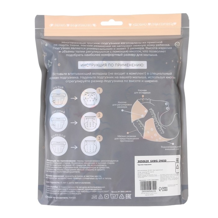 Трусики-подгузник, многоразовый, с вкладышем «Бабочки», Крошка Я