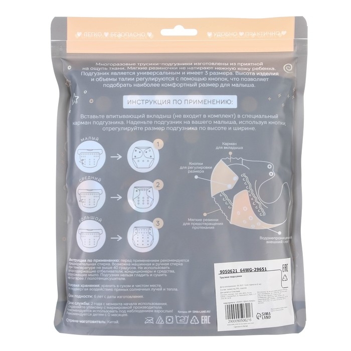Трусики-подгузник, многоразовый, с вкладышем «Бабочки», Крошка Я