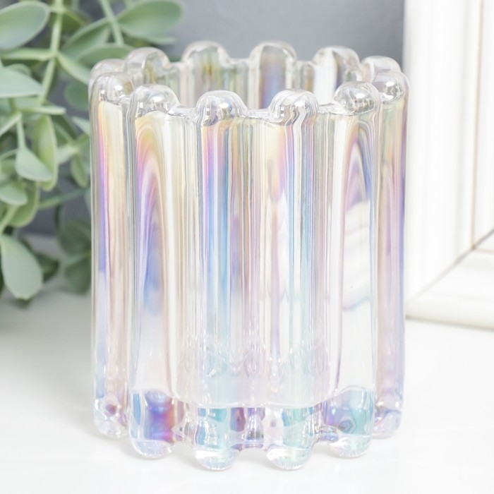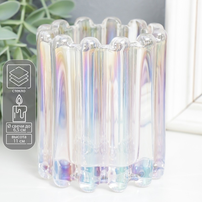 Подсвечник стекло "Блюр" d-6,5 см перламутр 9х9х11 см