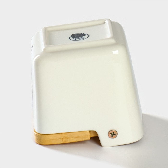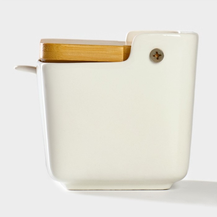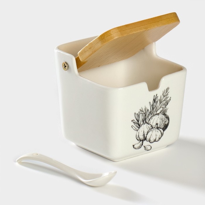 Банка для хранения сыпучих продуктов с ложкой «Эстет. Овощи», 250 мл, с бамбуковой крышкой, фарфоровая, цвет белый