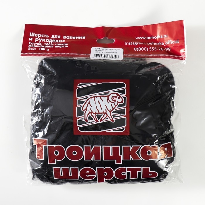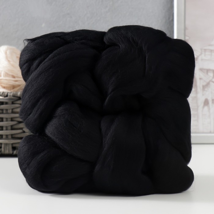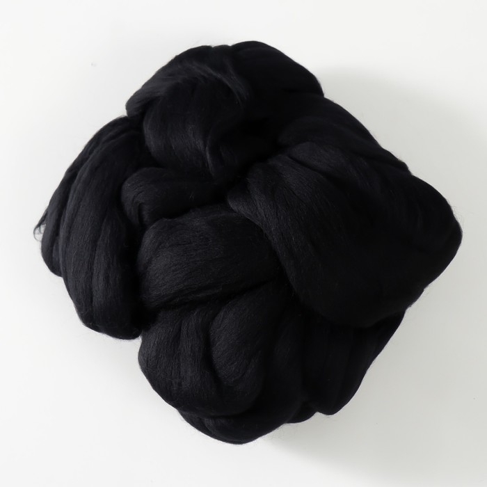 Шерсть для валяния 100% тонкая мериносовая шерсть 100гр (02 чёрный)